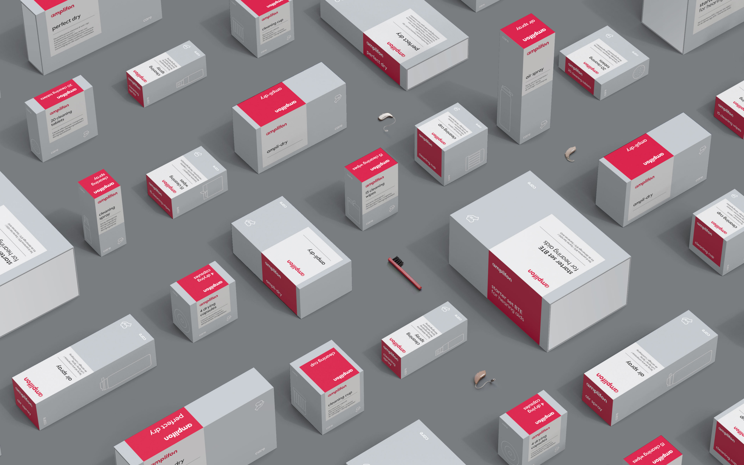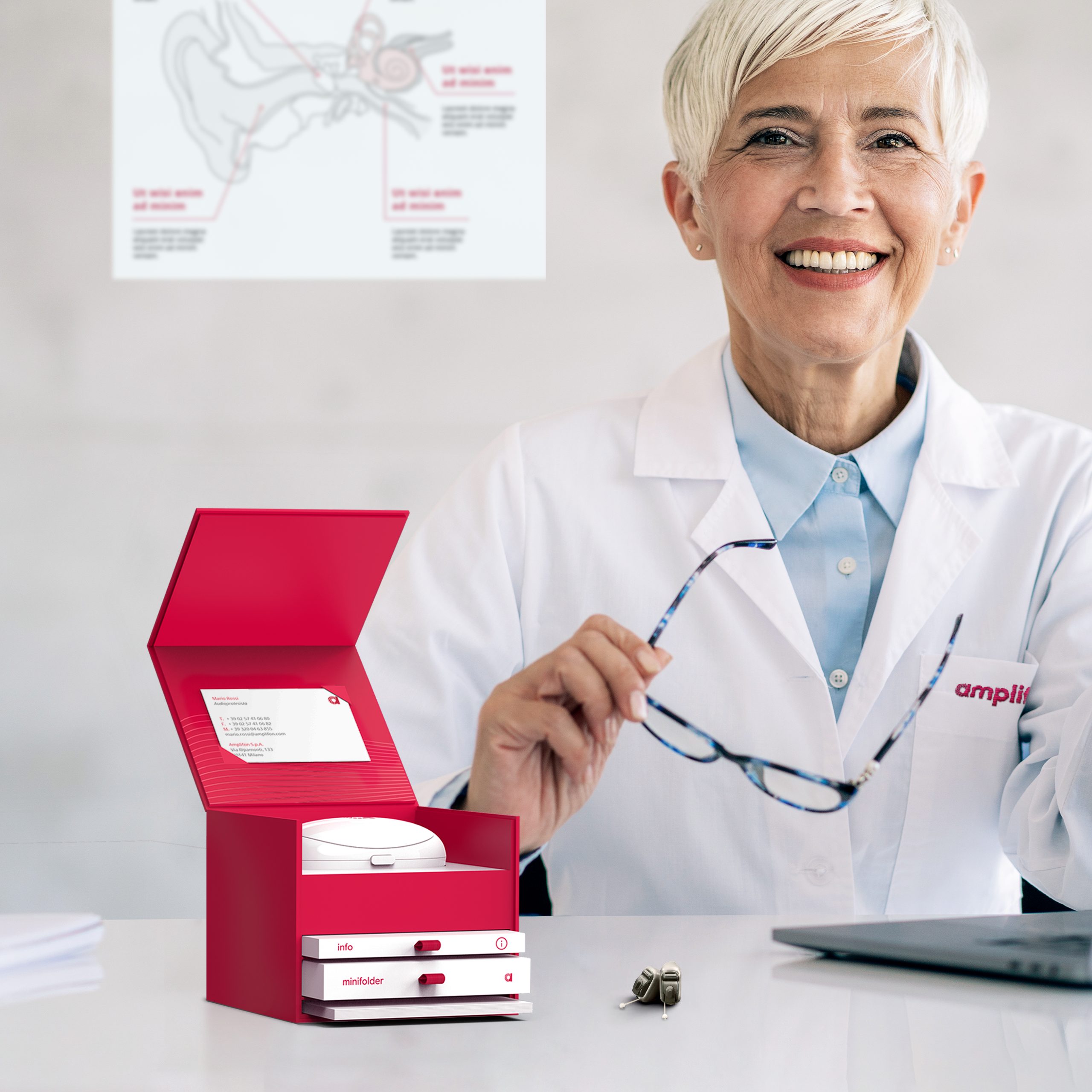 Complementing the strategic revamp – and in accordance with its guidelines – our team redesigned Amplifon’s Cube, an iconic item on the hearing aid market that perfectly expresses the brand’s values, reformulates the selling ceremony, and explores a new expanded and cohesive packaging system, which also includes new supporting items like accessories and care products.