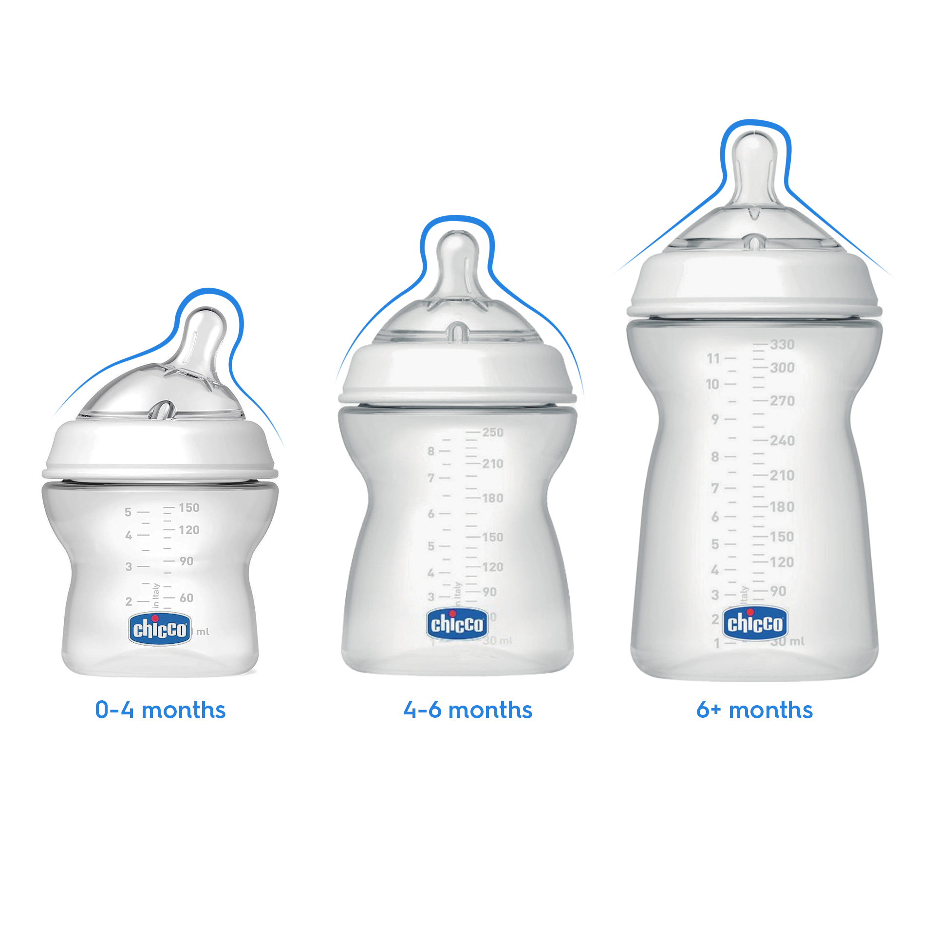 As babies grow, so do their feeding habits. Taking these changes into account and observing the growth of children informed the main design references for the Natural Feeling baby bottle range , adapting to these various changes with three different teats.