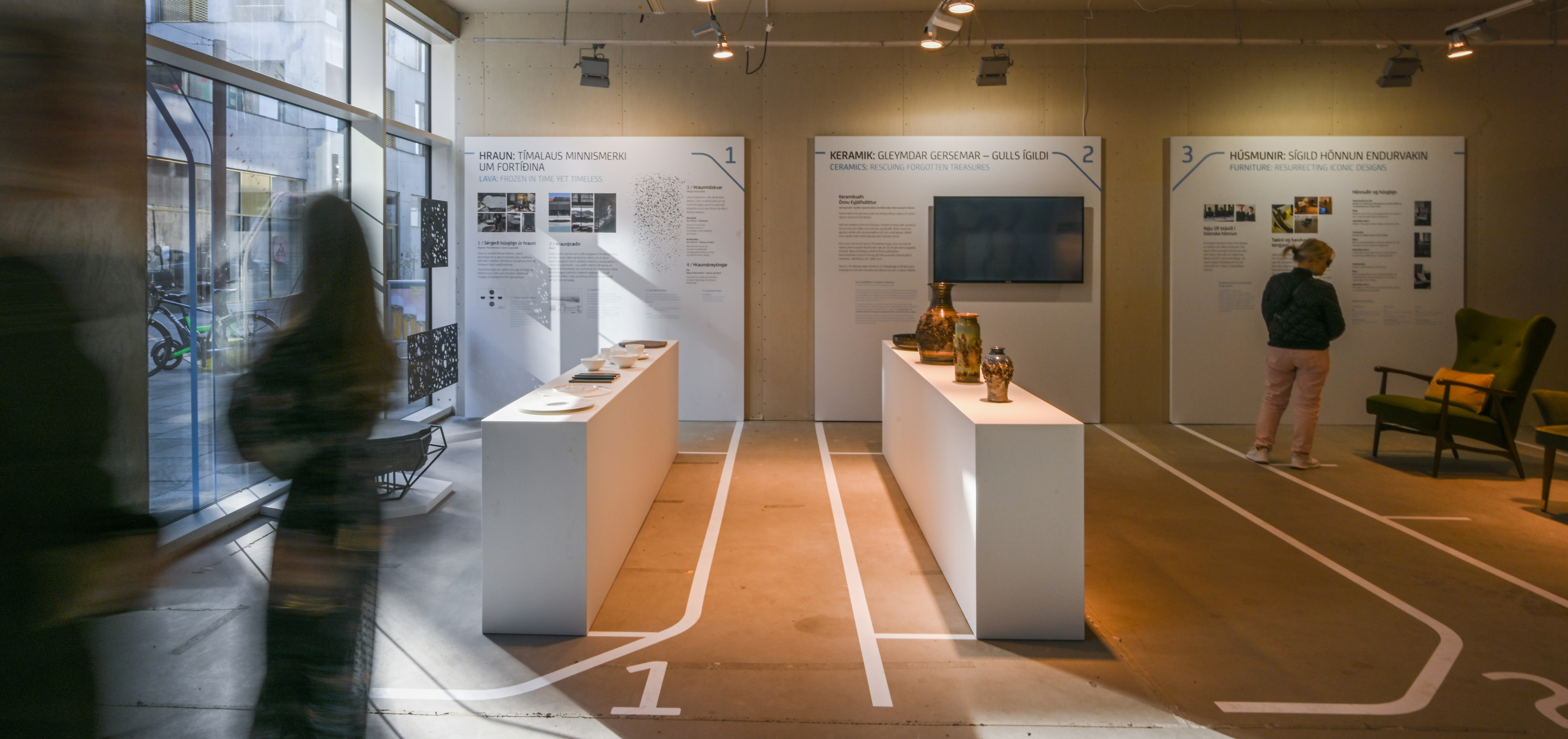 Every corner of the exhibition was conceived to showcase a materic and stylistic tale. Five stories were created, each with its own narrative behind the designers, the process and the pieces on display, ranging from classic Icelandic pieces to collaborations with contemporary designers, from graphics to custom ceramics collections.