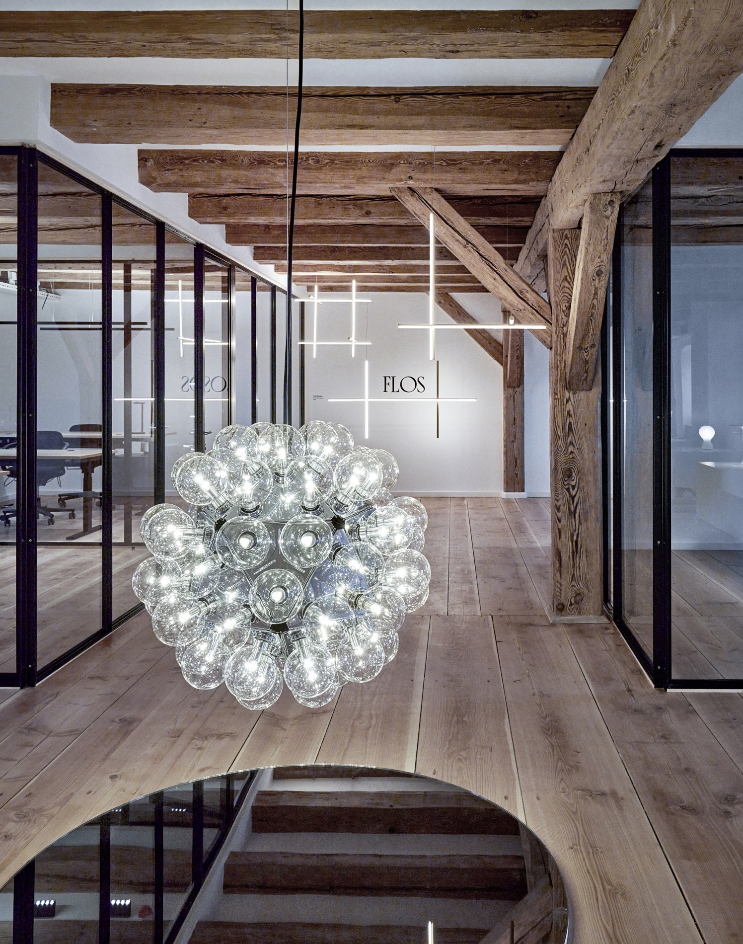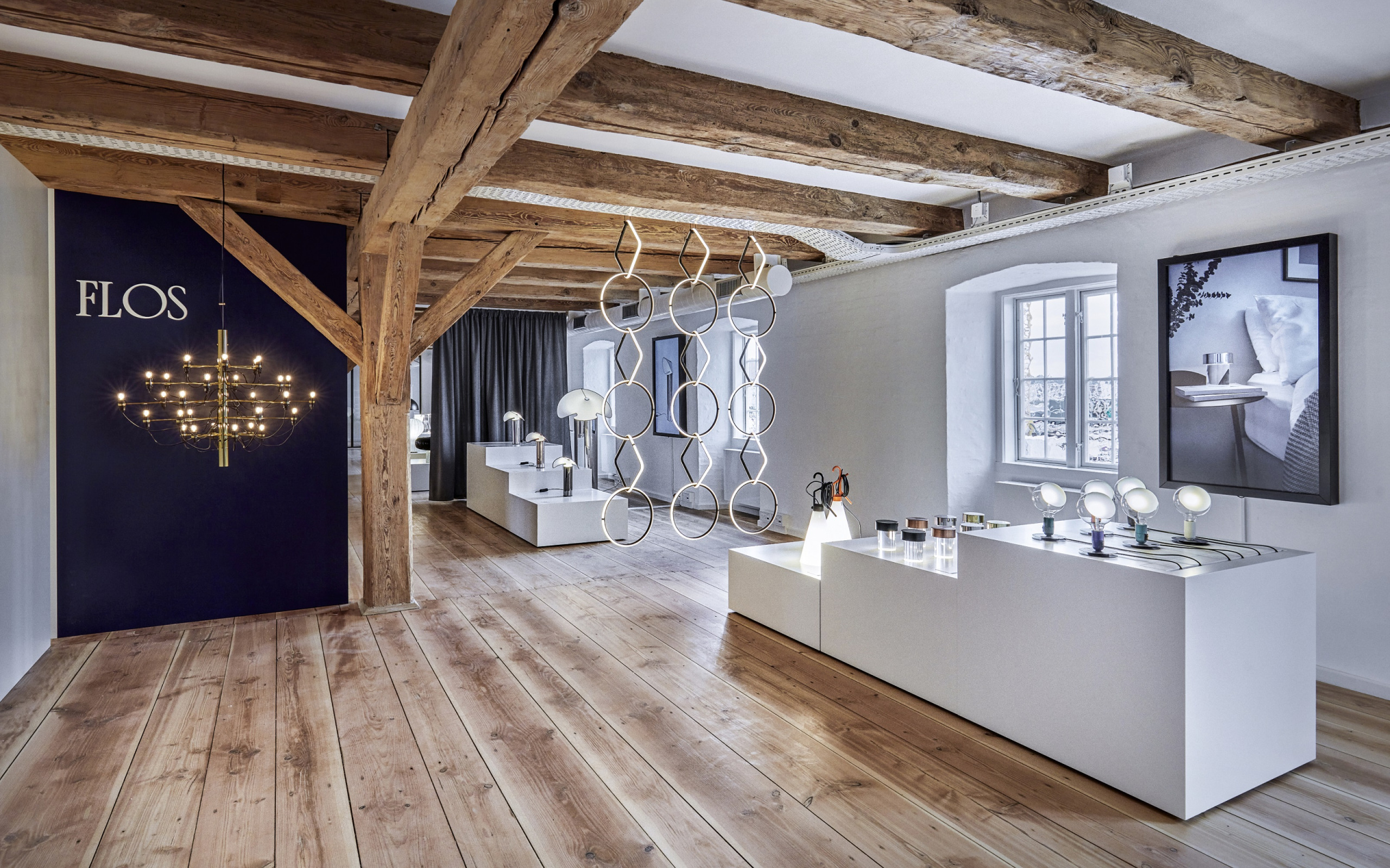 Italian lighting brand Flos tasked us with the design of its Scandinavian headquarters in Copenaghen. The showroom spreads over the entire first floor of an historical building, offering a comprehensive display of decorative, architectural and outdoor collections.