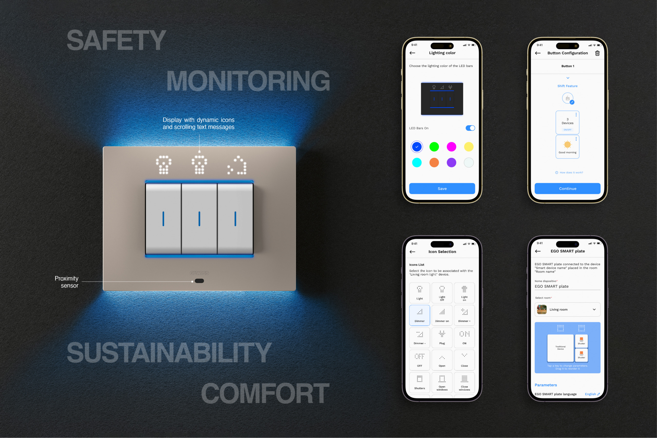 Starting from there Gewiss, together with our Product Design and Digital Product Design teams, created EGO SMART: the smart plate that propels home automation to unprecedented levels.