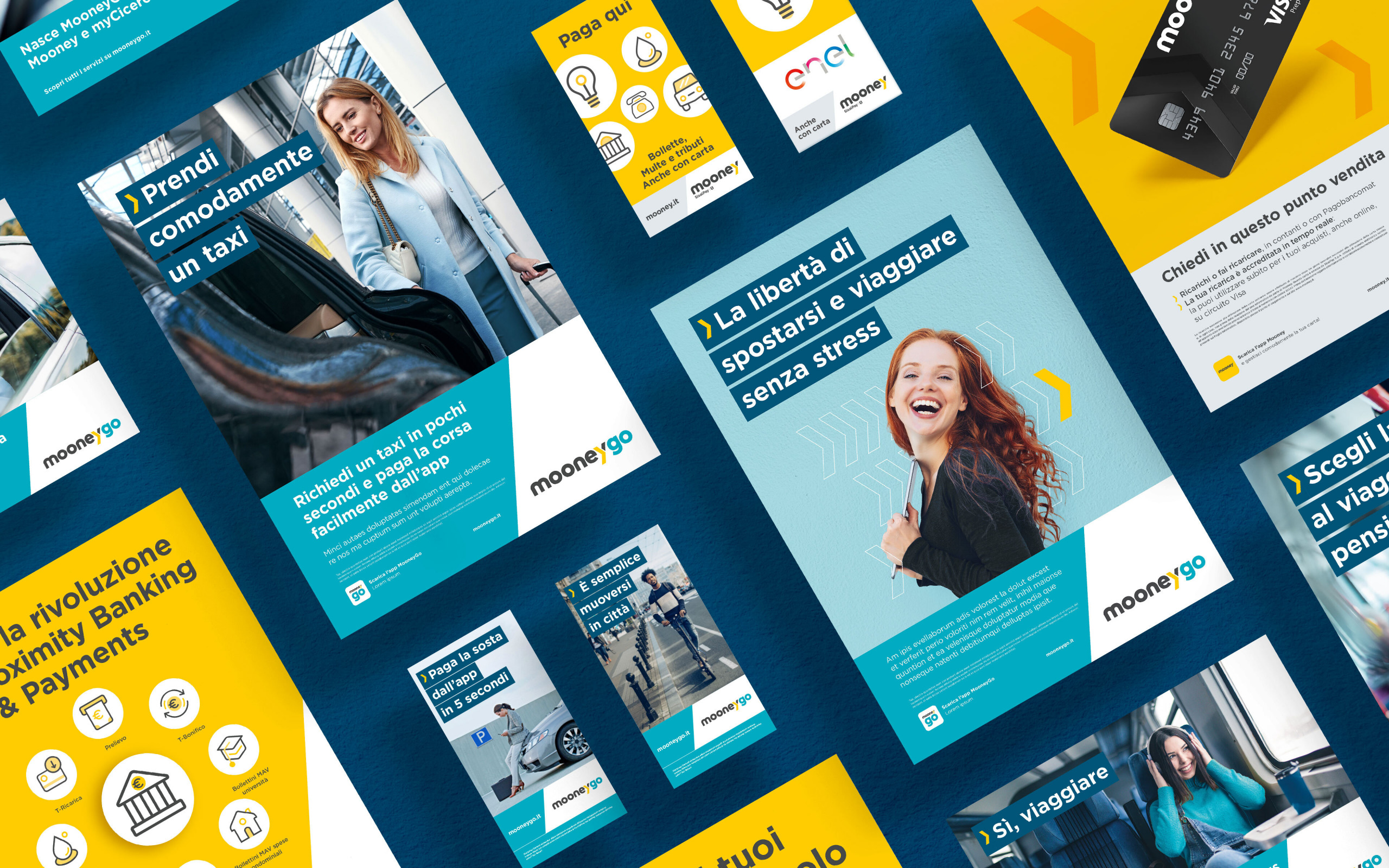 Sharp and dynamic the visual assets and tone of voice were crafted to convey the entire MooneyGo offer.