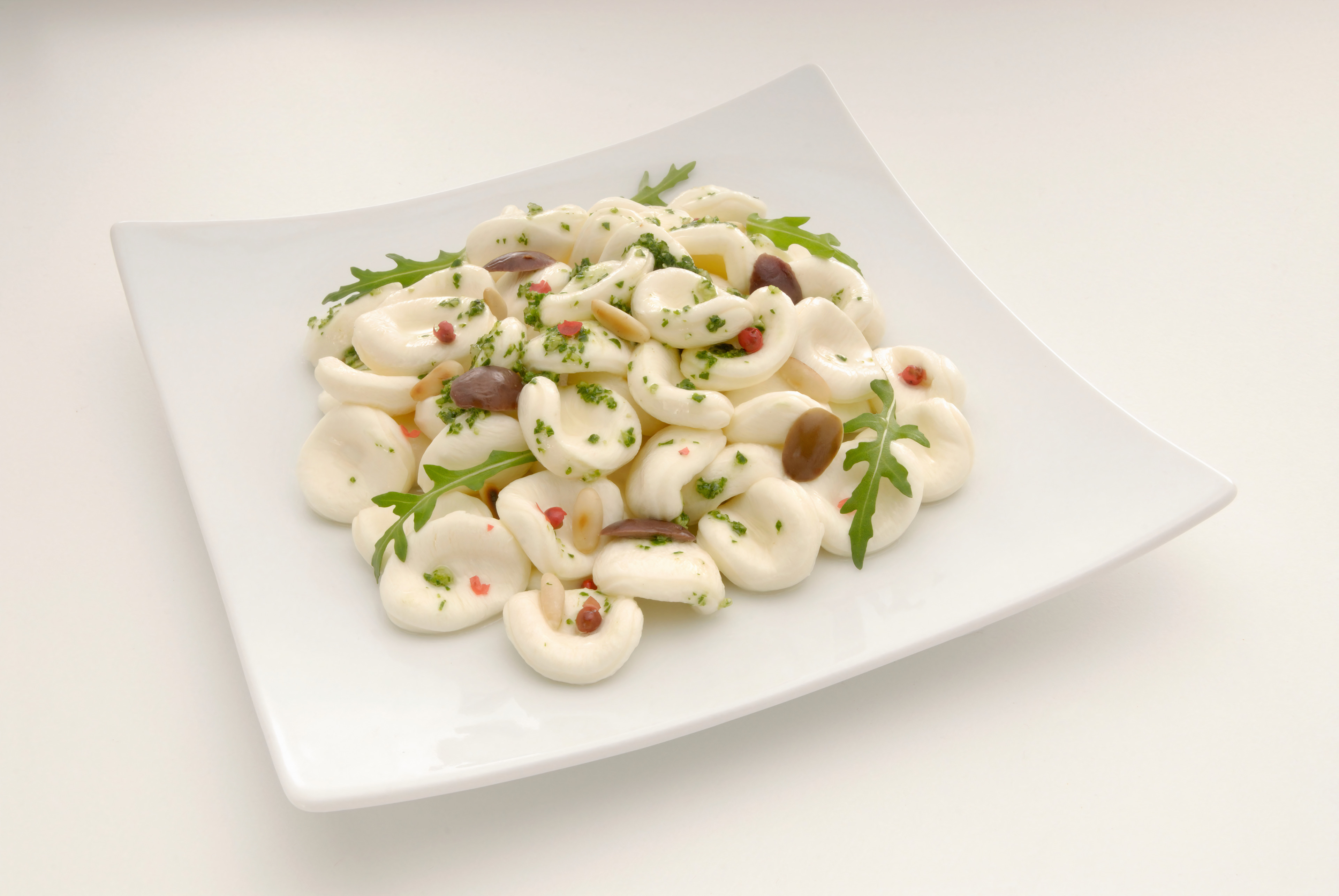 After much experimentation, orecchiette pasta was found to be the closest shape to the round, edgeless appeal of mozzarella. Copying the shape of orecchiette was possible without altering the cheese making process.