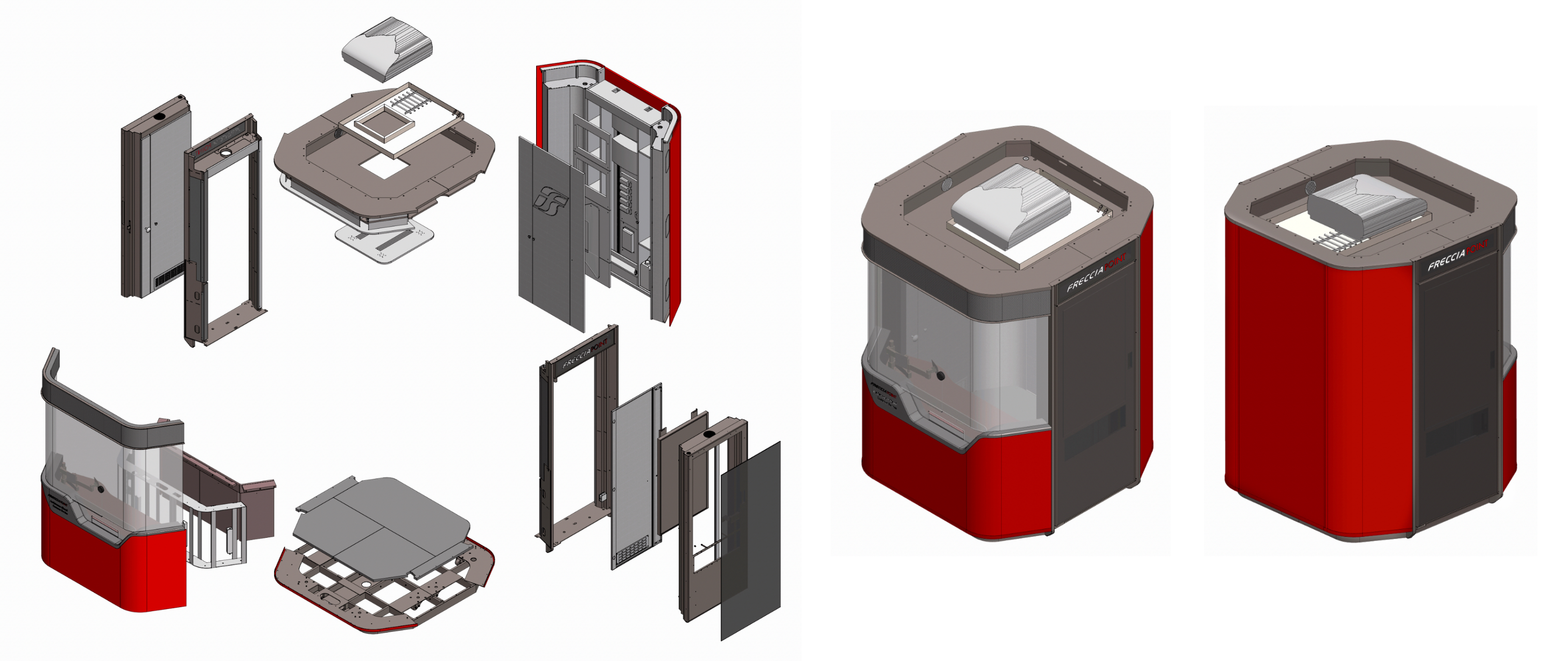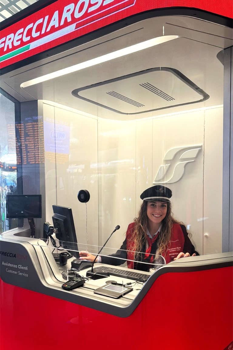 The project came with multiple objectives: to offer a comfortable and efficient work environment for station operators, to ensure the structure could adapt to different station settings, to make it immediately recognizable, and to reflect the premium quality of the Frecciarossa service.
