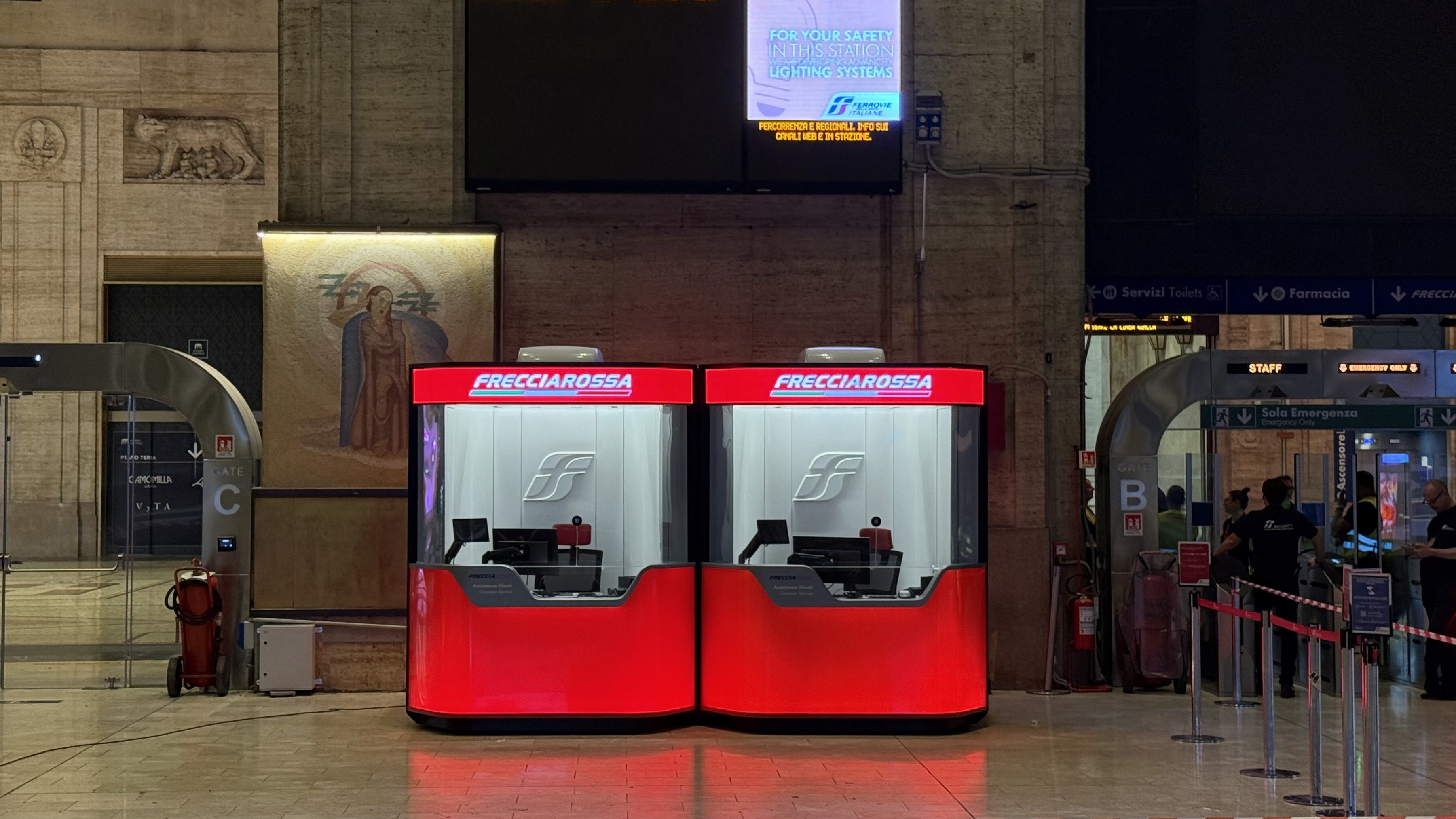 Finally, safety — a fundamental aspect in any station environment — was addressed with care. The Frecciapoint ensures protection for both staff and users through its robust structure and secure closure system during inactive periods.